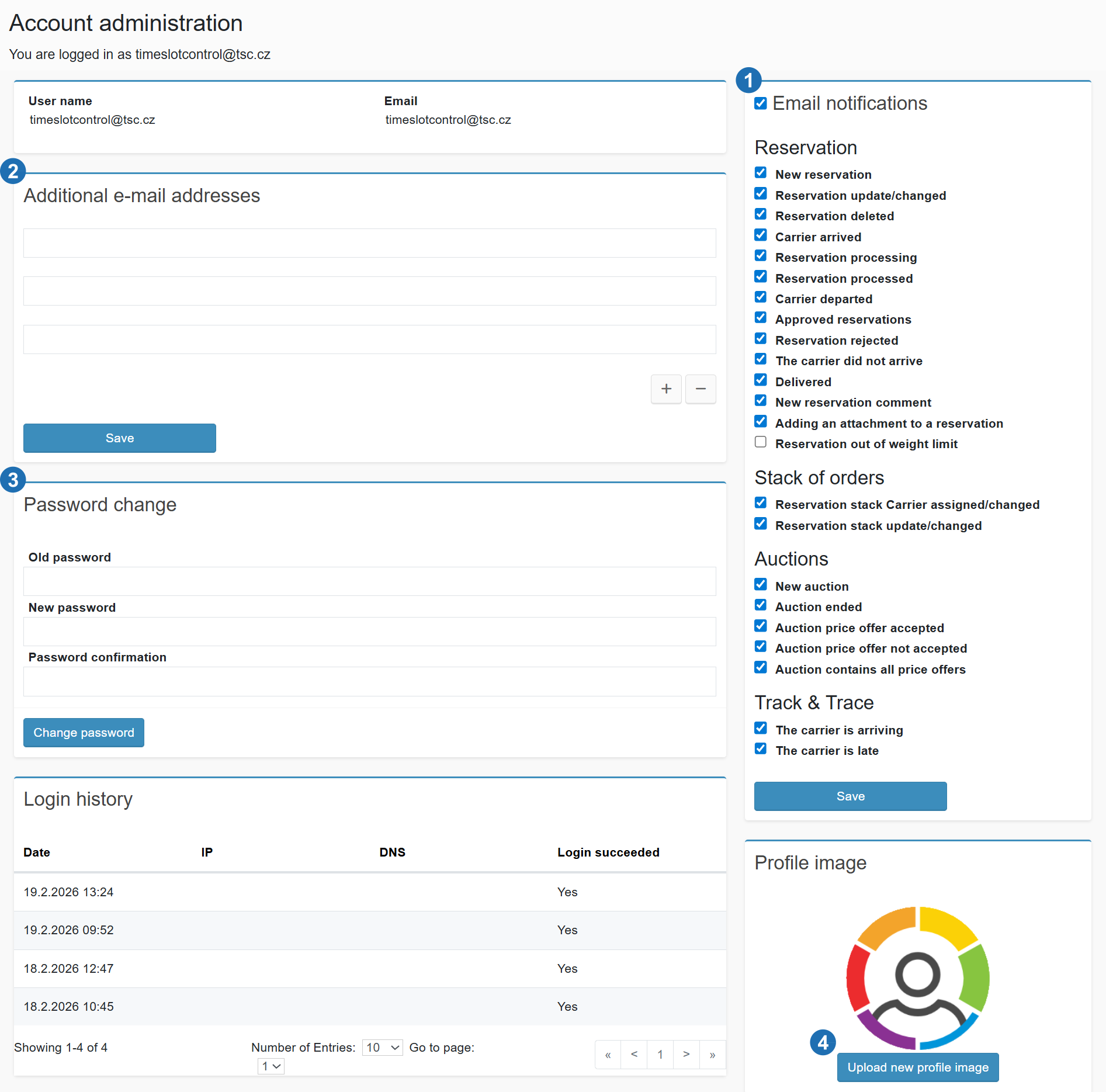 After clicking the "Profile" link, you will be redirected to the page where you can edit your personal settings and login credentials.