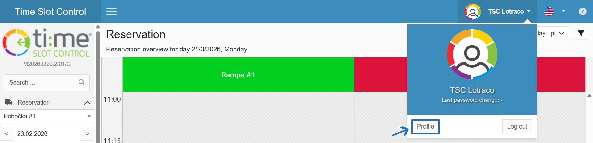 User account management and language settings are available after logging in, in the top right corner of the application.