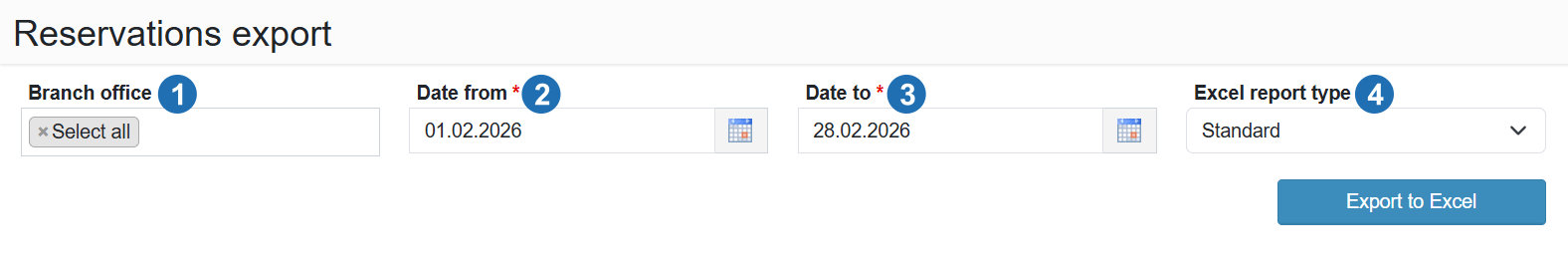 The reservation export generates a data output of reservations for a selected period. The resulting Excel file can be used for further processing, sharing, or archiving. Suitable for detailed analysis in Excel, sharing with clients, or connecting to Power BI.