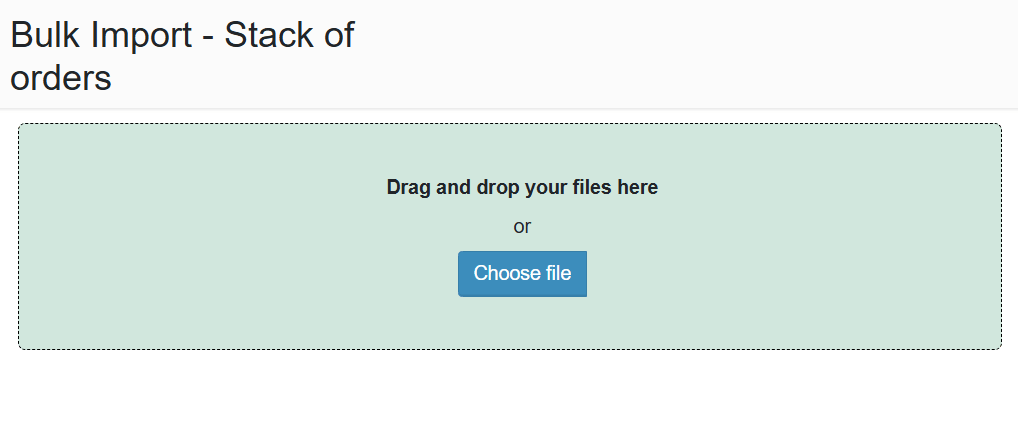 The user uploads a file with a defined structure (e.g. Excel). The system processes the data and creates individual orders in the stack.