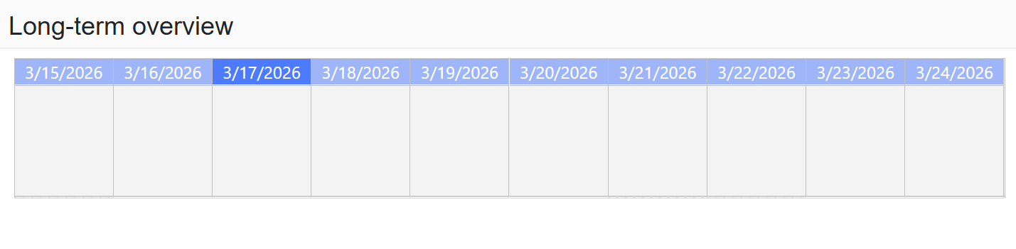 The Long-term Overview section displays orders on a timeline. It allows users to monitor planned orders over a longer time horizon.