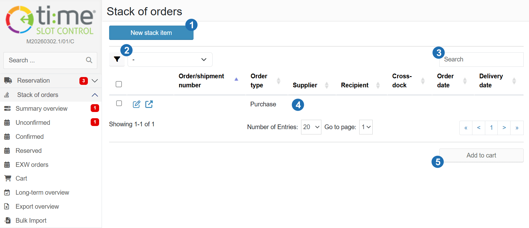 The Order Stack is an add-on module of the Time Slot Control system. It is used to work with pre-prepared orders from which time slot reservations are subsequently created.